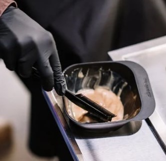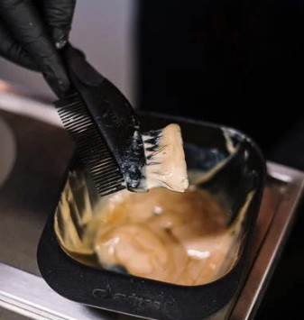 5、当所有头发都抹上染发膏后,再用染发梳梳一遍头发,保证所有头发都均匀地沾上染发膏