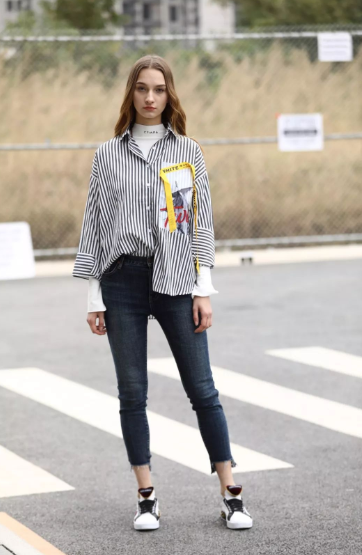 5. 【Oversize 黑色T恤】 最近的女生都流行穿OversizeT恤了。因为这样穿,不仅能让你看起来娇小,而且还能拉长你的双腿比例,让你的腿看起来更修长。黑色T恤如果要这样搭配的话,建议选一些有字样或者有图案的单品再配上一双白鞋,这样看起来才不会乏味枯燥,也能让你看起来比较有个性。