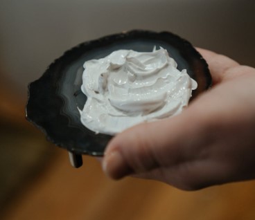 1、将选好的卸妆膏直接用内带的小刮片挖出,涂在脸部的凸出位置,如额头,脸蛋、下巴、鼻尖、颈部。
