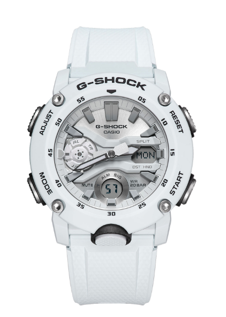 全新系列GA-2000的新配色。军事风格,立体表盘和大型前置按钮更加凸显此系列的坚韧质感。 GA-2000全系列采用碳纤增强型树脂作为表壳,新型碳纤核心防护构造,轻薄且强韧。