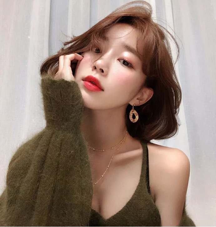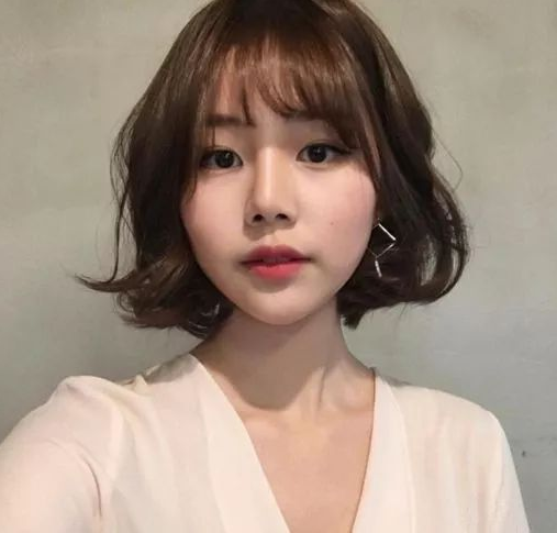 【第三款】 而这样的一款齐肩短发发型也是很好看的哦,把发尾稍微的做个烫卷,让头发有着自然的卷翘,再加上红棕色的色系,搭配着稀薄的空气刘海。凸显出精致的五官,既可爱,又萌萌哒,还非常的减龄哦,非常时候走可爱路线的小女生。