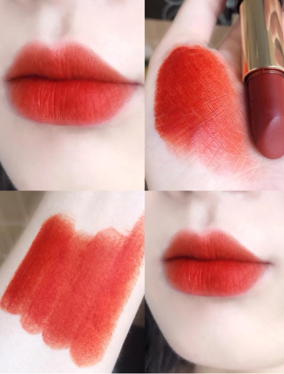 Mac chili是Mac家最经典的口红色号,深受大家的喜爱,它的颜色是带点橘调的棕红色,很显白,适合各种肤色和季节,上嘴之后是哑光质地,不容易掉色,持久度很高。