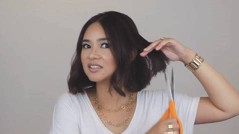 这时候就要确实一下你要剪短发的长度,选齐肩的头发长度刚刚好,不长不短,是比较容易百搭的,发尾一定一刀剪下去,不要犹豫,不然会剪得参差不齐,剪了之后还要对一下两边是否对齐,再修剪一下发尾,就不会太过于死板!
