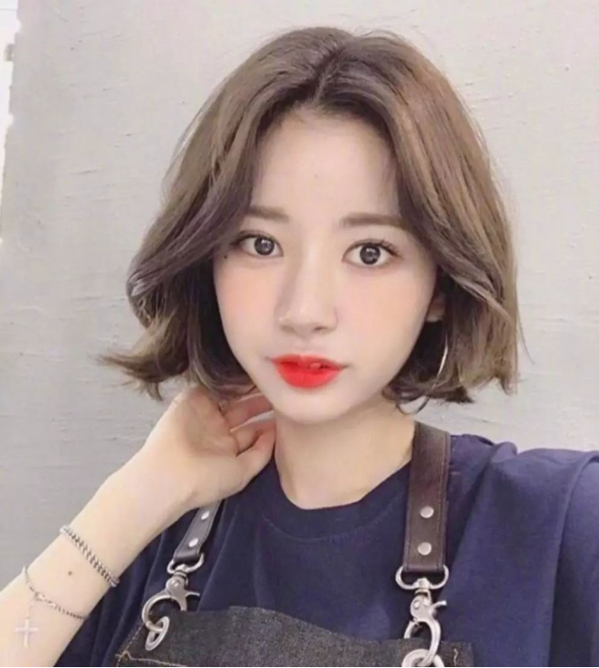 中短发其实是一种半长不短的尴尬期发型,这种发型长度长度适中,瘦脸的作用最大,搭配内扣跟空气刘海,减龄的同时脸型会瞬间让人小一圈,露出精致的五官就像换了一张脸,好看又百搭。