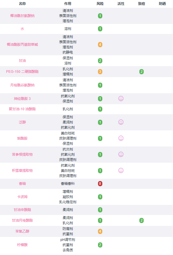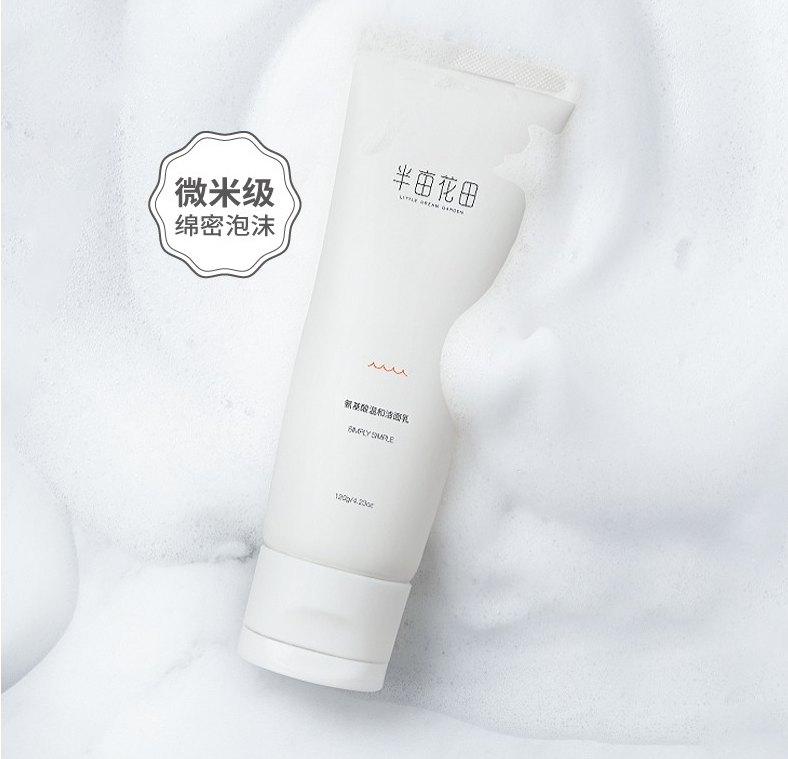 半亩花田氨基酸洗面奶的表活成分是氨基酸,对肌肤几乎零刺激,而且更容易深入毛孔深处带走污渍,而且很容易冲干净,不会有残留堵住毛孔。
