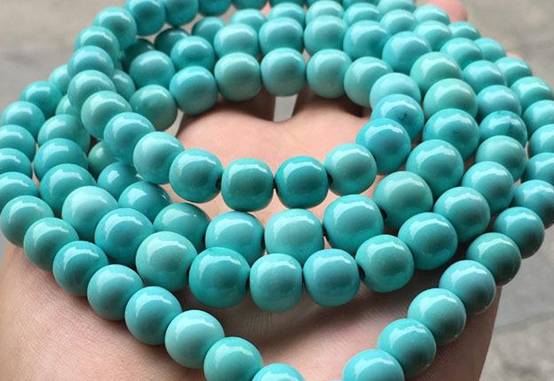 绿松石在佩戴或者把玩的过程中,接触到人体的皮肤,不知不觉中就会沾染上人体所分泌的汗液和皮脂,汗液是由小汗腺分泌的,对于绿松石的上色来说,汗液起主导作用。