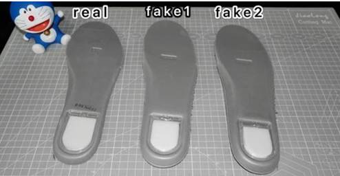 注意看real气垫上方是有钢印的,而市面两双fake都是没有的,在看不见的地方偷工减料也是fake一贯的作风。大家注意区分。