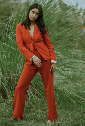 搭配六:黑色吊带背心+黑白竖条纹阔腿裤