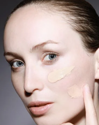2、均匀肤色:一般来说主要是黑眼圈、痘印、斑点等瑕疵让肌肤看上去不完美,所以针对这些局部瑕疵需要遮盖。选择专业的遮瑕膏在瑕疵处轻点一下,然后指腹拍匀。
