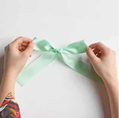 打法二:礼盒蝴蝶结打法,将礼品盒放到丝带上,在盒子边缘弯折绸带,交叉扭转九十度,让丝带两端在盒子背面相逢,将丝带一端从另一端下方穿过,将丝带两端折起,形成两个环,然后抓着两个环相交打结,拉紧不让蝴蝶结松开,打好结后进行适当的调整,保证对称即可,完成。