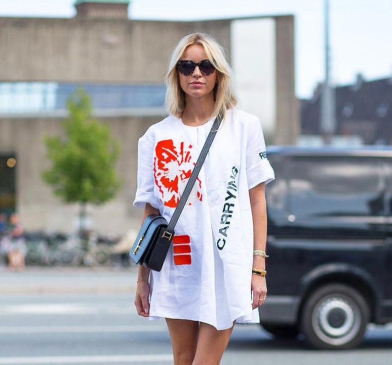 如果你不喜欢把衣服塞进裤子里也没关系,女生其实穿宽大的T恤也会有不一样的可爱,记得下身加一件紧身裤子就好了。如果是男生的话,你也可以选择把过大的T恤当作平时运动时穿的衣服。比如打篮球、跑步的时候宽大的T恤是再适合不过了!