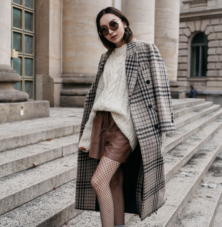 2. 毛衣+针织裙 oversize的毛衣加上保暖的针织裙,简单又很又文艺范的搭配,冬天也可以在针织裙下穿一条打底裤保暖,但是只要不怕冷,漏出脚踝也无所谓。