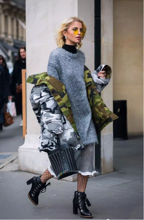 4. 毛衣+修身牛仔裤 oversize的毛衣配上高腰的修身牛仔裤,把毛衣前面扎进裤子里,很显腿长,这也是上松下紧的搭配。