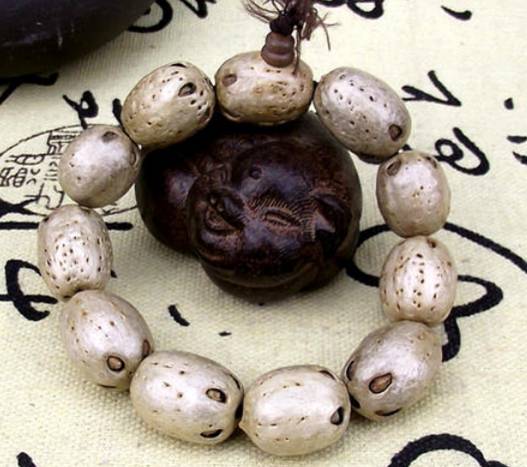 五眼果经常被用来制造手串或者佛珠,出了材质合适外,更重要的是五眼果上的五个眼刚好与佛家神通五眼六通相吻合。因此五眼果也拥有着智慧的意义,象征着超凡的聪慧以及道理。