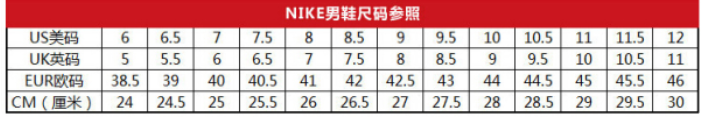 aj是NIKE耐克旗下的品牌,其尺码和耐克尺码表是一致的。在国际上aj鞋码用的美码,毕竟这是个美国的品牌,和中国码是不一样的。25厘米的鞋子,在欧码是40码,而在美国则是只有7码。随后每提升半码,都相应的增加0.5码,以此类推就能够知道大家究竟该穿多大的鞋了。
