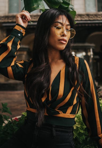 黑色小脚裤是一款百推不厌的裤子,真的是非常显瘦又百搭,选择一款包腿效果好的黑色小脚裤在视觉上就能瘦2斤,搭配一件长款条纹衬衫,韩国小姐姐既视感。