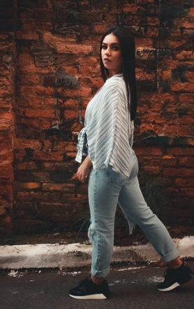 白色小脚裤也是最近几年很流行的,搭配衣服穿出来是非常洋气的,搭配一件长款条纹衬衫是很好看的。
