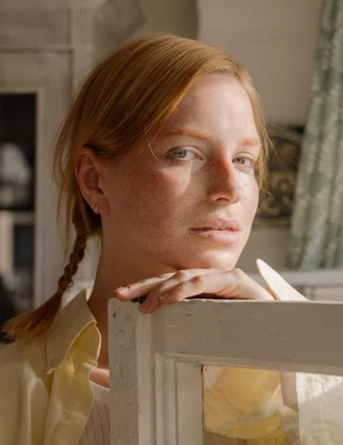 麻花辫叠加盘发的设计,别具一格,一缕卷曲的发丝散落在肩头,尽显温柔气息。