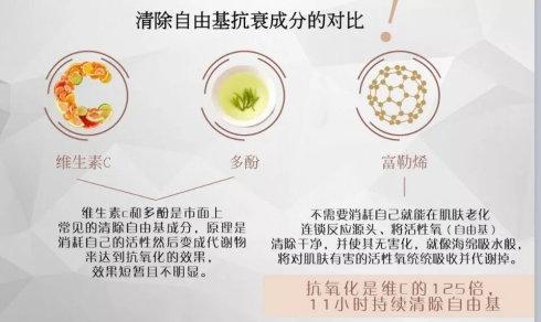这些主要还是归功于富勒烯水能够亲和自由基,具有极强的抗氧化能力,能够起到活化皮肤细胞,预防肌肤衰亡的作用。富勒烯水具有独特的抗氧化性。富勒烯水的抗氧化性是人们所熟悉的如维生素A、C或E,以及天然类胡萝卜素、类黄酮等抗氧化剂的成百上千倍。多年研究结果表明,含有小剂量水合富勒烯水的富勒烯水有着广泛而普遍的生物效应。