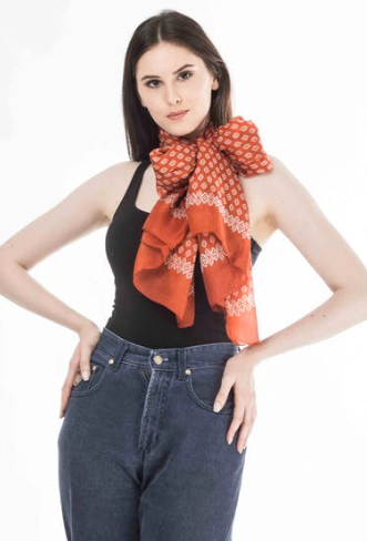 把折成适当宽度的围巾从前面挂到脖子上,围巾两端在颈后交叉后再绕到胸前。这样可以使样式普通的围巾造型,在整体搭配效果上会给人耳目一新的感觉。这种围巾会使脖颈处稍显蓬松,所以在搭配大衣时,要将衣领立起,把围巾系在外面,这样看起来不会显得臃肿。