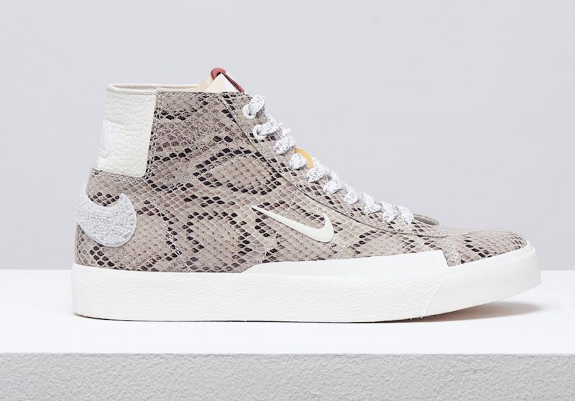 Nike 阵营中的滑板支线 Nike SB 也在今年的多次发力,仿佛又让 Dunk、Blazer 等鞋款回到了滑板鞋盛行的黄金年代。继此前的 Parra x Nike SB 的联名后,Nike SB 将在本月与丹麦潮流品牌 Soulland 展开第三次合作。双方将以 Blazer Mid 为设计蓝本打造全新联名,最引人注目的亮点当然是鞋面完全由蛇纹皮革打造,彰显欧洲品牌的奢华时尚气质的同时,也展露处街头文化的野性气息。