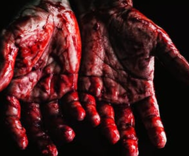 7、接下来用正红色或者血浆红之类的唇釉在伤口边上,纸内部堆一层营造出血渗出来的假象。注意伤口头尾加强多堆点,要呈现那种血半凝块不凝块快结痂的样子,注意唇釉颜色不能偏蓝调或者是泛玫红。