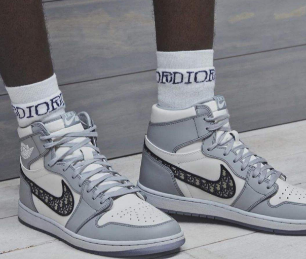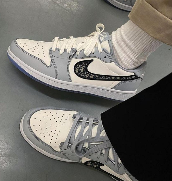 前不久曝光的AJ1迪奥联名是有高低帮的设计的,大家正好可以对比一下: