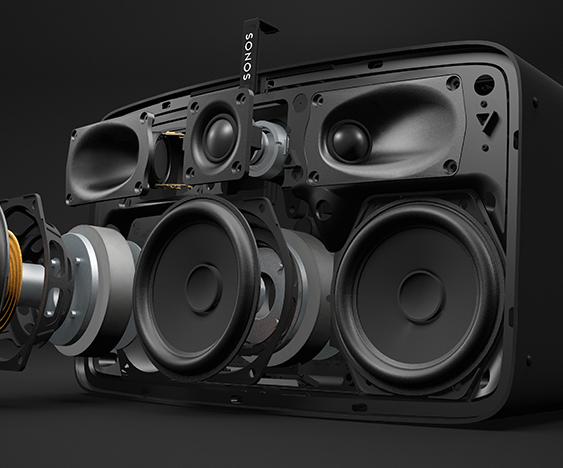 SONOSPLAY:5是Sonos “All in one”系列产品中的主打机型,适合在家中较大的房间中使用。发声单元包含五个数字功放,每个数字功放驱动独立驱动一个扬声器。低音炮负责产生超强震撼力的低频音效,两个中频扬声器搭配两个高频扬声器则制造出如清澈纯粹、饱满浑厚的声音。两台SONOS PLAY:5也可以组成立体声对使用。除了与SONOS PLAY:3相同的面板控制器和以太网端口外,SONOS PLAY:5还具备耳机端口和,比SONOS PLAY:3增加了线路输入和输出功能。Sonos提供多种组合方案, SONOS PLAY:5既可以单独使用,也可以与“All in one”系列的另一款产品SONOS PLAY:3结合成组一起使用。