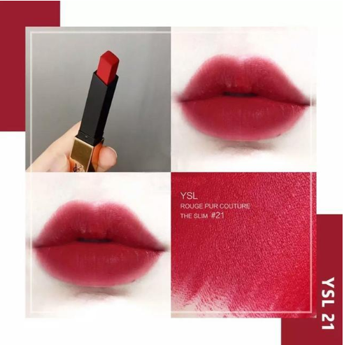 YSL小金条系列最热门的颜色之一,在宣传的时候就被用做海报色。纯正的冷调复古红,涂上以后让你看起来白到发光。