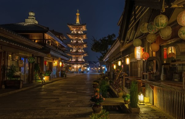 大唐不夜城位于陕西省西安市雁塔区的大雁塔脚下,北起大雁塔南广场,南至唐城墙遗址,东起慈恩东路,西至慈恩西路,街区南北长2100米,东西宽500米,总建筑面积65万平方米。大唐不夜城以盛唐文化为背景,以唐风元素为主线。