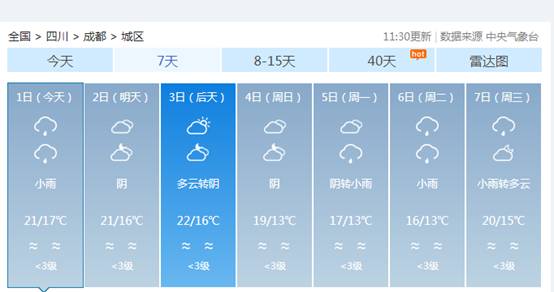 从天气预报上来看,2020国庆成都的天气整体来说还是比较凉快的,整整八天都是多云转阴的天气,大家要记得带好衣服预防感冒哦。