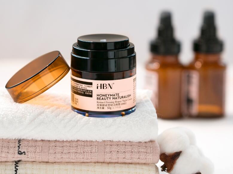HBN是一个比较小众但口碑很好的国货品牌,原液和精萃水都很火,这款视黄醇紧塑赋活晚霜使用的是视黄醇棕榈酸酯+视黄醇的双重视黄醇体系,我估计加起来的浓度应该在0.5%左右,虽然不高,也属于有效范围了。