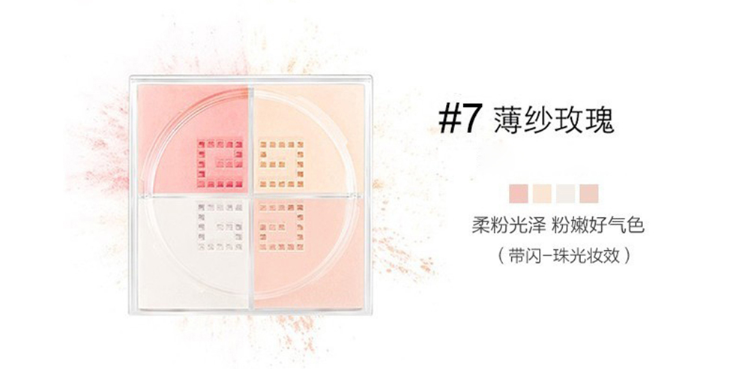 7号色薄纱玫瑰色:这是纪梵希散粉中最适合打造可爱日系妆容的一款产品,四宫格的色系都是偏蜜桃粉的,适合皮肤白皙的女生使用,帮助打造元气妆容。