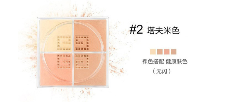 纪梵希四宫格散粉有四个色号,分别是1号色慕斯淡彩、2号色是塔夫米色、5号色丝缎珍珠色、7号色薄纱玫瑰色。四个色号分别对应不同的脸色修饰作用及对应肤质类型。