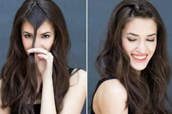 2. 取前额中央一缕头发旋转一下,用发夹固定住,搞定。