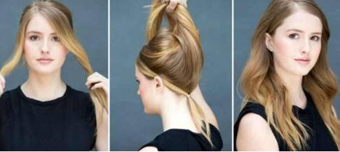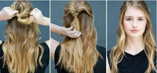 5. 把头发分成上下两部分,把上部头发的发尾从中间穿过去。