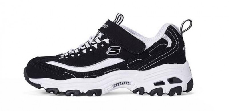 这款斯凯奇跑步鞋采用了经典的黑白分层配色方案,它整体采用船型构型,前后各有微微的上翘。鞋面采用网面,品牌LOGO采用经典的印花粘贴设计,整体外观略显朴素。