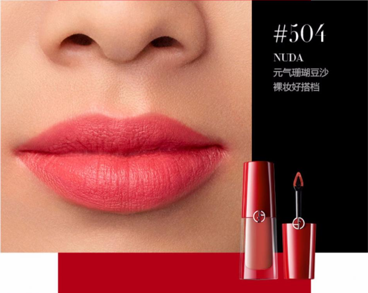 9. 阿玛尼小胖丁染唇液504珊瑚粉