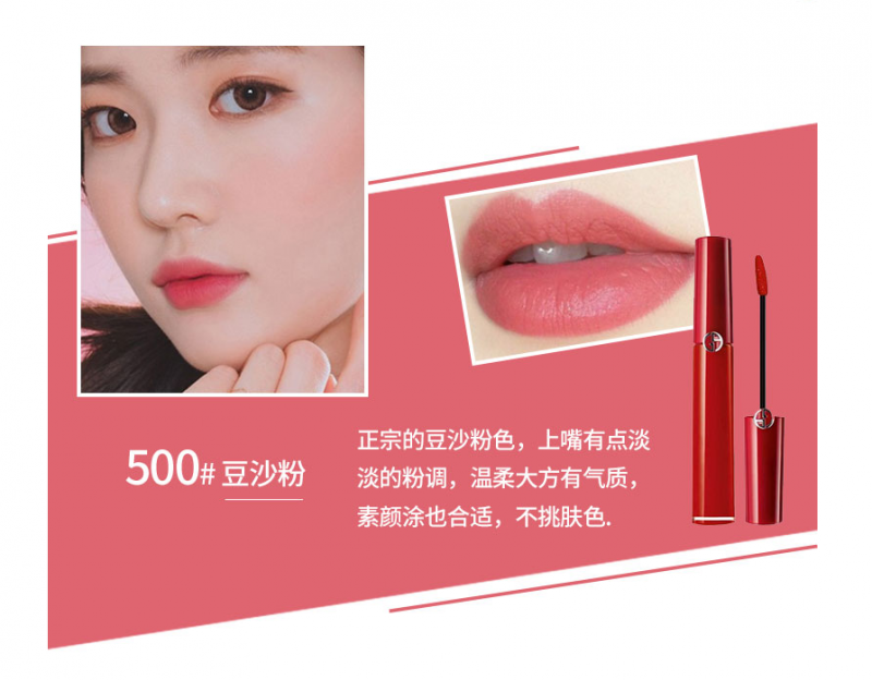 1. 阿玛尼臻致丝绒哑光唇釉红管唇釉500粉调豆沙色