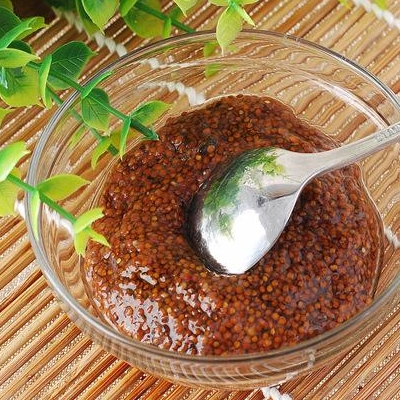2. 加入适量的温水,温水调海藻粉,海藻出胶多,缓缓加水渐渐用面膜棒搅拌,直到感到海藻不能接收水分为止。
