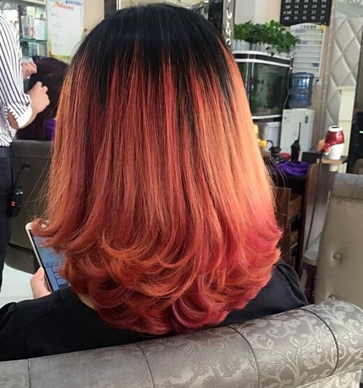 自然黑的头发显得沉闷单调,好看的黑色渐变发色可以尝试一下,黑色发尾染大红色。非常有视觉感;黑色发尾然橘色,鲜亮活泼;黑色发尾染渐变蓝色,高冷气质女王就是你;黑色头发发尾染黄色造型,高级又不失优雅。