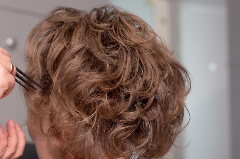 将头发用卷发棒向内侧烫卷发稍。将脑后的头发用梳子逆梳制造蓬松感;在脑后的地方垫入假发,然后再用头发遮盖好;发胶也是打理卷发必备的美发产品;卷发发型可以再带上一款自己喜欢的发带。