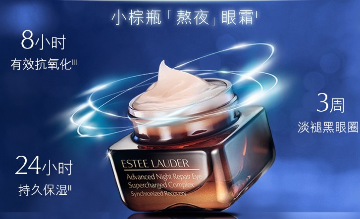 雅诗兰黛眼霜质地轻盈,能直达眼肌真皮层,瞬间吸收,深入呵护滋润你娇嫩纤薄的眼周肌肤。雅诗兰黛小棕瓶眼霜饱含点滴ANR修护精华,强效能量渗透眼周肌肤,根源改善细纹、皱纹、浮肿、黑眼圈、干燥及肤色不均6大问题,抵御各类岁月侵袭。让你重回年轻。