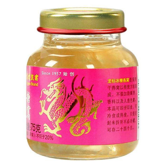 推荐理由:长期占据新加坡燕窝市场70%以上的市场份额,在新加坡享有“未尝龙标,不识燕窝”的美誉。从采购到成品,均采用现代化管理及严格的品质控制,确保产品纯净、无杂质,保有天然的营养价值。