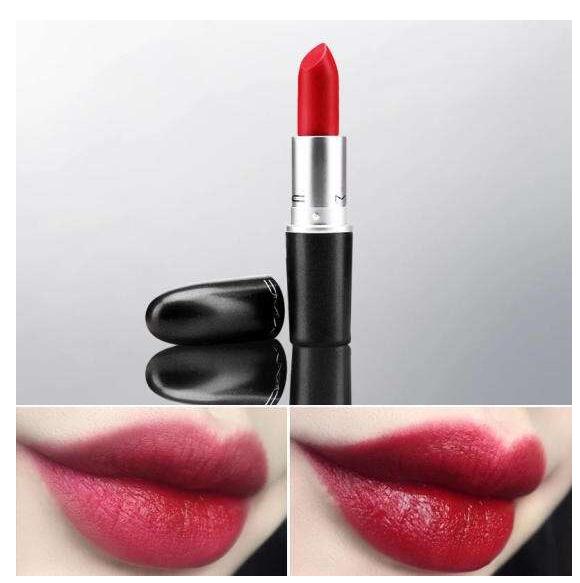 MAC家的经典色号,是复古正红色,传说中适合一切肤色的大红色,很有气场也很高级,带点复古的感觉膏体颜色偏暗,涂出来的偏雾面的质感,上嘴会更正红,性感显气场。不管是咬唇还是厚涂都很好看,并且也是灰常的显白。