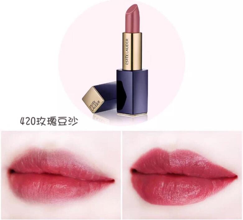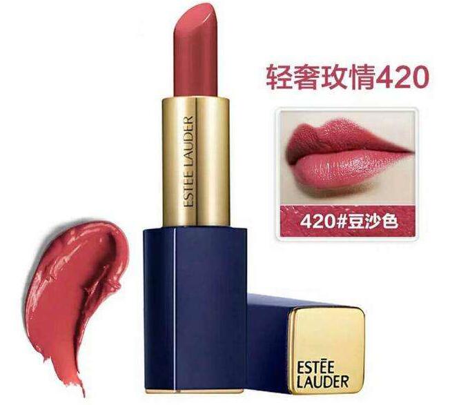 3. 雅诗兰黛420了,曾经红头半边天,看起来就像是绵绵的豆沙奶油冰,上嘴很舒服,薄涂是眼眸低垂的少女,厚涂是知性小姐姐,很优雅温柔,显白显气色,这次包装上还有了小小的变化,包装是限定玫瑰粉管。