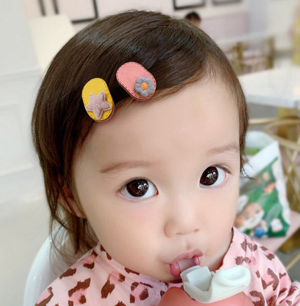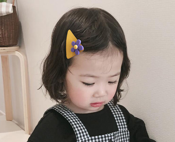 3岁宝宝的发质极好,短发梳理得极为整齐,顺着脸颊滑落,发尾带有些许的内扣,搭配厚重的刘海,戴上发箍更甜美。