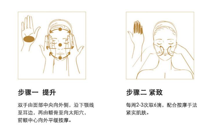 娇兰复原蜜可以每天使用,一般早晚各使用一次即可。一般在基础护肤之后使用,也就是洗完脸,抹完水乳之后,霜之前使用。使用前轻摇几下,滴取3-6滴复原蜜,于掌心温热后,双手从面部中央向外侧沿下颚线至耳边,再从颧骨向太阳穴,最后由前额中心向外平滑肌肤,这样的按摩手法有助于肌肤吸收养分,让肤质更加紧实细腻。