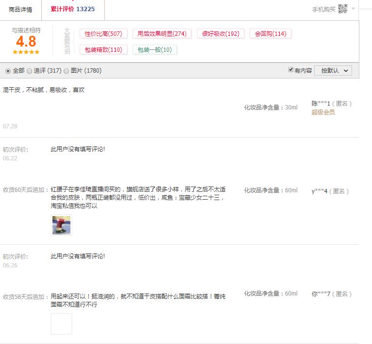 在几个头部电商平台旗舰店用户评论较多的是红妍肌活精华露用后效果明显、不油腻、包装精致、性价比较高,其中只有极小部分评价表示一般。可见产品总体来说是还不错的。当然也要根据自己的肤质,经济实力等选择适合自己的产品才是最好的。