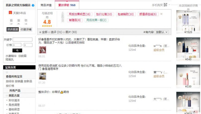 在肌肤之钥的几个电商平台旗舰店的几万评论中,用户评论较多的是效果明显、性价比高、包装精致、颜值在线等。只有约百分之一左右的用户觉得效果一般,由此来看,该产品还算是比较不错的,但不同的肤质及使用方法不用,最终的使用效果也是不尽相同的,这是需要注意的。